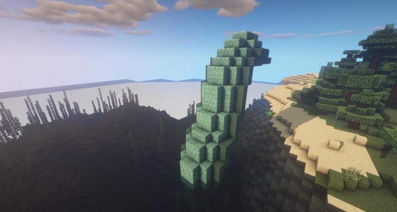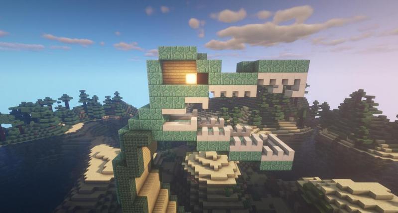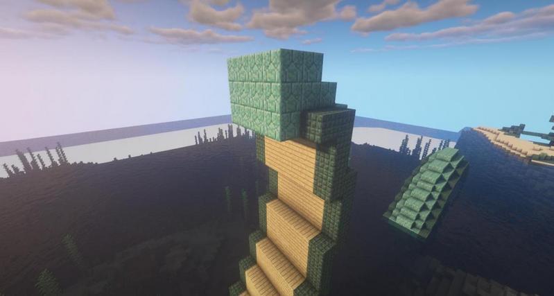 在中间的白桦木板上加一层海晶石砖,身体就做好啦。