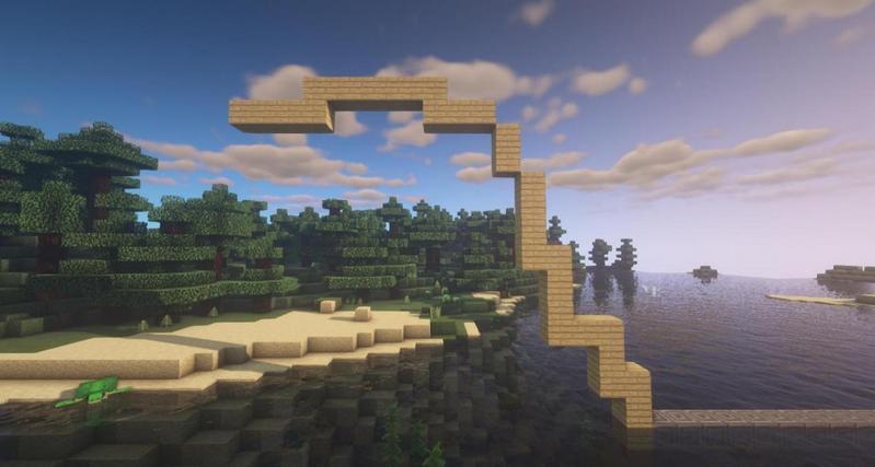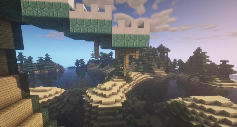 用海晶石砖加宽。注意,边缘两条海晶石砖可以空出角落,这样会显得比较有层次感。