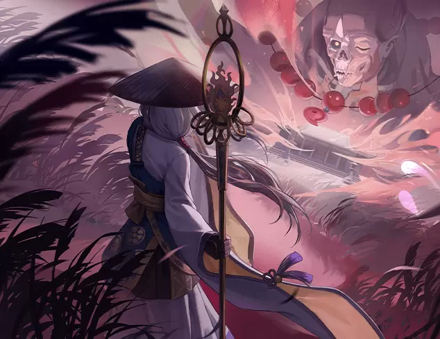 妖怪似乎对他没有半分印象,只是霸道地横亘在厉魔之前,为厉魔争取了一丝喘息之机。当青蛇吐着鲜红的信子袭来,他立刻举起禅杖抵挡攻击。