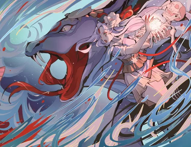 然而清姬的目光毫无犹豫,她正承受钻心之痛,甘之如饴的微笑却始终浮现在唇角。她纤细指尖小心捧护的骷髅头挣扎嘶吼。
