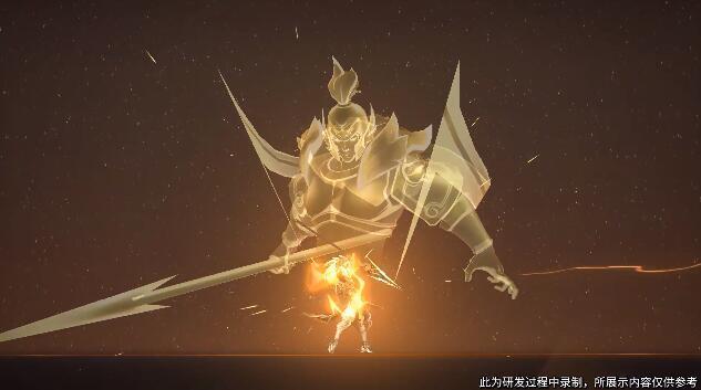 【技能特效设计】金色闪电特效贯穿技能表现,大招开启,守护灵向马超掷回雷霆之枪,灵体和英雄战场接力,羁绊战斗。