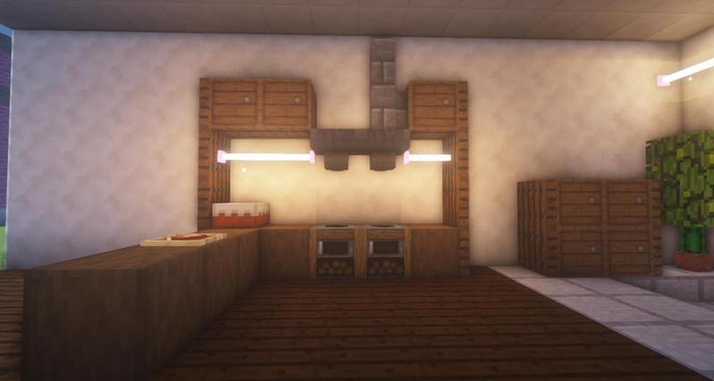 地板上放熔炉、去皮深色橡木,墙上放上漏斗、木桶和石砖墙。