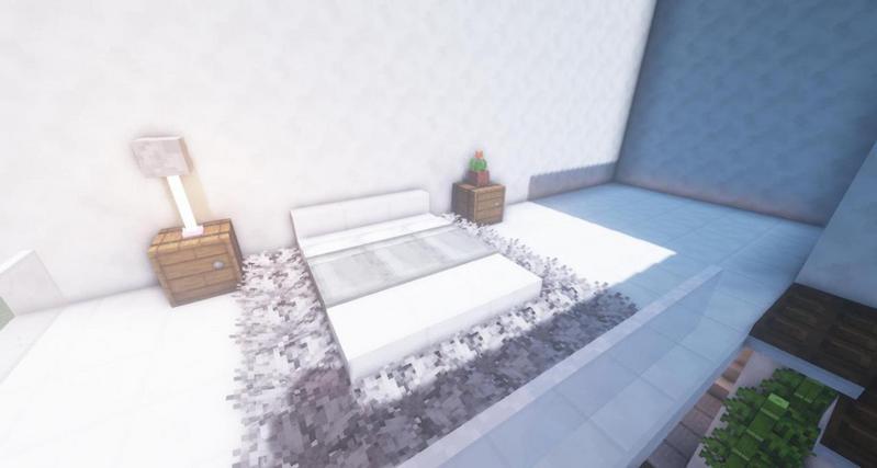 一边床头柜上放花,另一边用末地烛和骷髅头颅做台灯(骷髅头颅要对着墙放噢,这样就看不见它的脸啦。)
