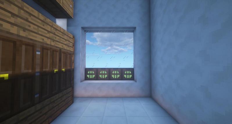 做一个4*4的大窗户。下面用从林木活板门做装饰。