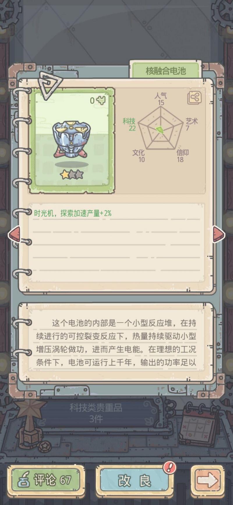 第五场景中左侧的小柜子点开后下方的第三本书中有着专属的6条密令各位老爷们不要忘记领取,第一本书中的投资收益不需要过早支付白蝌蚪,只需要当战力够时在点击投资即可立即获得白蝌蚪奖励,中间的机器人在打不过之前可以与其对话选项依次为:你是干嘛的?—你看守什么东西?—你在这里多久了?—你不用换电池吗?—你可以借我看看么?将机器人的电池草船借箭过来(我凭本事借的电池凭什么还你)获得绿色贵重品——《核融合电池》,在击败看守机器人时会获得一大堆其看守的物品(大概能击败的战力在3w5或4w2以上),有电气锤、和三节棍随便打。