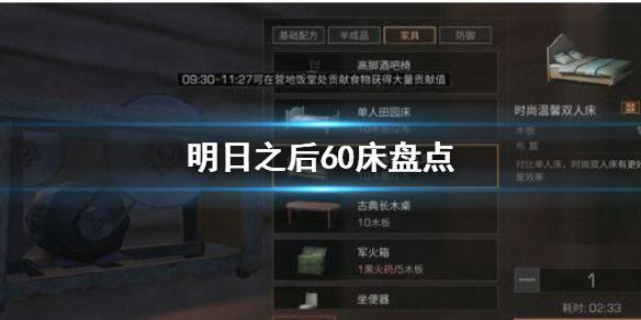明日之后60床有哪些?明日之后里的60床能恢复耐久,小伙伴都非常感兴趣,那么有哪些呢,今天小编给大家带来明日之后60床盘点。