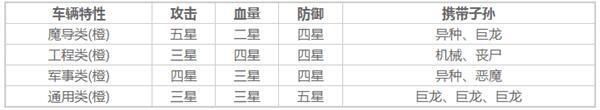 通用类车辆:通用车辆的防御力是最高的,但血量和攻击力都不如其他车辆。