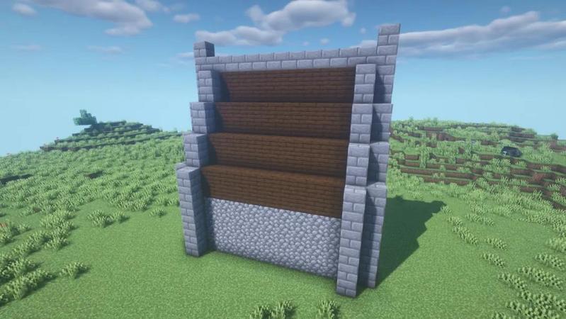 也可以在墙面上开一些洞,放置木栅栏当窗,底下放置石砖楼梯,窗上面放置云杉活板门,装饰部分也差不多完工了。