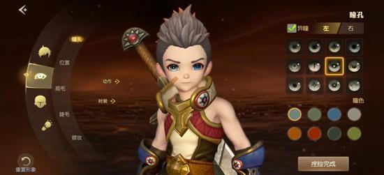选择好头发之后,接着开始捏眼睛,我们同样可以看到,眼睛居然分为左右两个区域进行单独展示,大家甚至可以选择左右不同的瞳孔造型,显得更加独特。