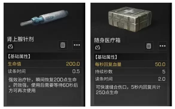 肾上腺素、医疗箱也需提前配备,能使幸存者们短时间内回复生命值,争取更多的战斗时间。