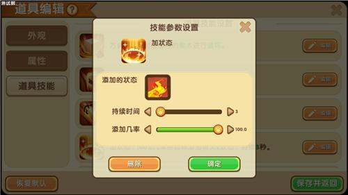每种技能都能对其进行各项参数和效果的自由调整,想要将道具设置成自己想要的效果就需要大家不断地测试并调整啦!