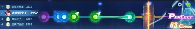 舞蹈单局开始后,车手们会看到一条音轨,音符将会从音轨的左边向右边移动,当音符进入判定区后,车手们在屏幕的任意区域,做出相应的手势操作即可完成音符的敲击,音符的圆心越接近判定线,获得的分数就越高。