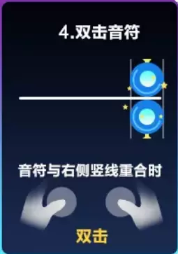 两个蓝色音符同时出现则为双击音符,此时需要车手在两个音符同时进入判定区后双击屏幕。