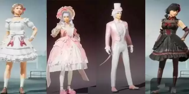 4、时装系列:共推出三套服装,分别是黑红、粉白与白红配色。从隐蔽性考虑,黑红配色最为实用,但整体色调偏暗;白红配色则过于醒目,即使是资深玩家也需要谨慎选择。最受欢迎的当属粉白配色,男款设计优雅浪漫,女款则宛如精致的洋娃娃,无论是整体造型还是细节装饰都十分出色。