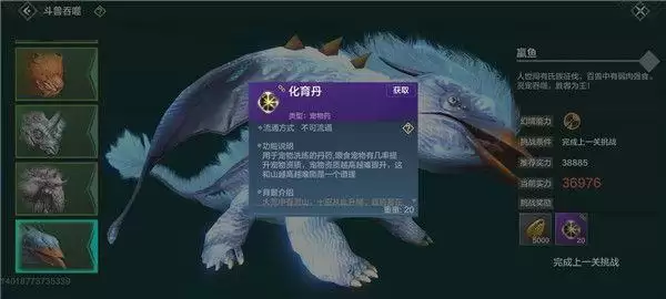 斗兽吞噬一共30关全部通关可获得贝币66250个,化育丹290个(化育丹用来提升宠物资质)