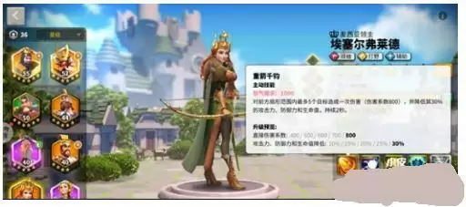 我们再了解一个游戏的机制,就是主将和副将的主动技能是分别释放的,所以埃塞尔适合作为主将,先利用重箭千钧的debuff效果破开对面的防御,然后利用游戏机制让副将释放技能,从而可以使副将的技能打出巨额的伤害!