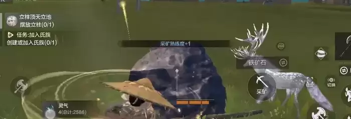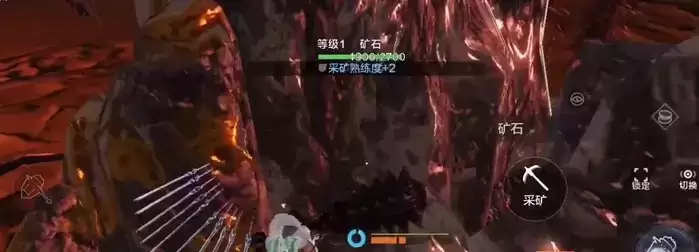 如果不是去矿山,那么在森林中也有零星散落的矿石,靠近石块就会出现采矿的图标,长按图标就可以进行挖矿的操作,这是比较基础的挖矿操作。挖矿多了可以提升挖矿等级,然后消耗技能点提升生活技能,就可以进一步提高挖矿效率。