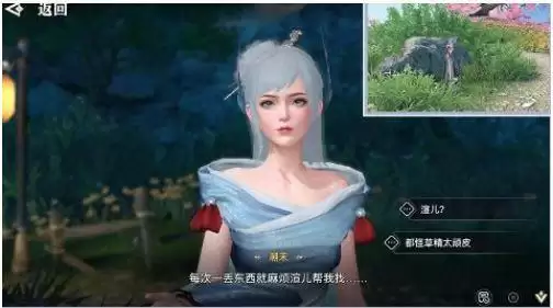 找到潮禾(苏澜414,399)(图一)接取任务,掏出变身器,变成草精看向身后,找到小草精(图二)对话拿(抢)到首饰换给小姐姐,(不要变回来!)