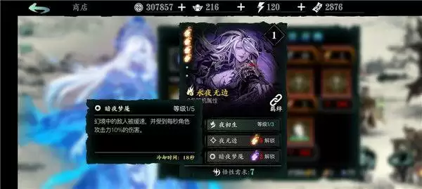永夜无边:1绝技增加杀意,装备中散搭杀意流套装的话很实用,前中期杀意不足用这个也很好;2绝技让敌人在一定时间内无法使用任何技能,冷却时间也短,可频繁使用,非常强力,pvp和极致伤害流的pve胜负都在瞬秒间;3绝技可以用来在技能空档期闪避保一波命,辅助输出。