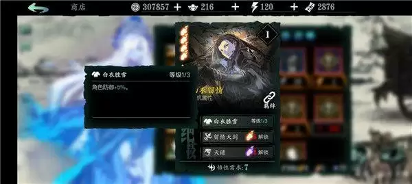白衣留情:1绝技增加角色基础防御面板;2绝技辅助输出;3绝技概率眩晕,金色心法养成困难,不过可与黑暗无情搭配构成t1级别的黑白羁绊,前期神级羁绊