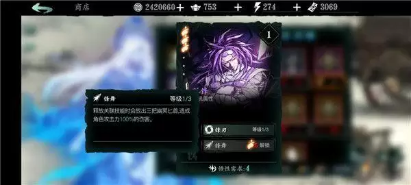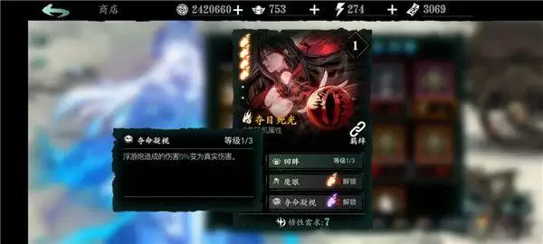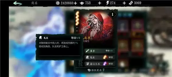万魔之魂:1绝技增加角色基础面板的暴伤,非常强力;2绝技的增伤增防buff也非常可观;3绝技免控,前期用到后期的神技。