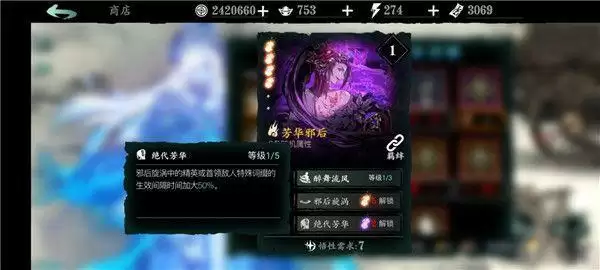 暗夜飘香:1绝技增加杀意,前期非常实用;2绝技为增伤增防buff,较为实用;3绝技回甲+免破甲;可与芳华邪后构成t1级别的暗芳羁绊。