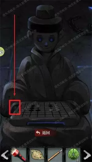 11、获得玉佩之后不要急着返回场景,点击石像袖口内的棋子,获得白色棋子。看不清在哪的话可以参考下图。