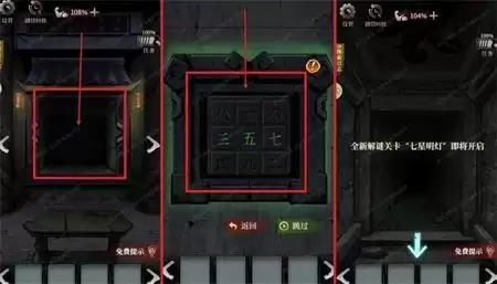 12、点击场景左上角的兽首机关,进入破解机关小游戏。这个机关很简单,点击四个角上的方块可以调整位置,调整至图中这样并长按拖入图中位置即可完成。
