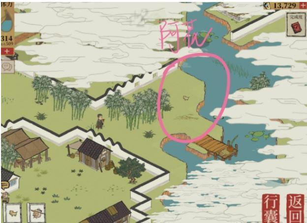 33.阿花可能跑到茶铺后面的捕鱼码头边(找回阿花)(烟熏肉×1,体力-50)