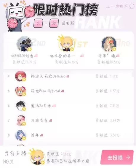 B站直播热门榜榜一,直播间最高人气两百二十万。
