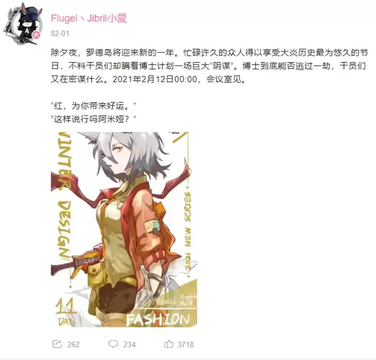 很多人并不知道的是,在B站,类似的明日方舟拜年活动还有另外两场。这两场拜年活动将会分别在小愛(FlugelヽJibril小愛)以及绘之音(绘之音)的账号上进行发布和放送。