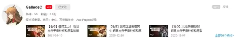 再后来,我们与鸽子球(今天鸽子球咕咕了吗)、老G(GalladeC)、魏晋(魏晋南北)等认识,共同倡议并且成立了现在主要以明日方舟世界观、剧情、人物以及考据等内容为创作素材的UP主团队,瓦莱塔学会。