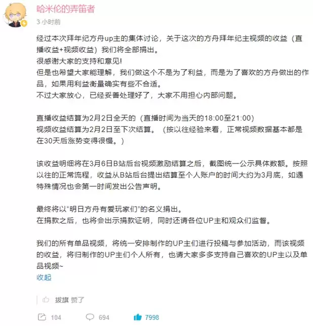 不仅泛式、陆夫人和瓶子君等B站大UP出现在直播间和视频的评论区,明日方舟的游戏制作人“海猫络合物”也给出了价值36888元的SC支持,感谢所有在台前、幕后组织参与了拜年纪的明日方舟玩家与爱好者们。