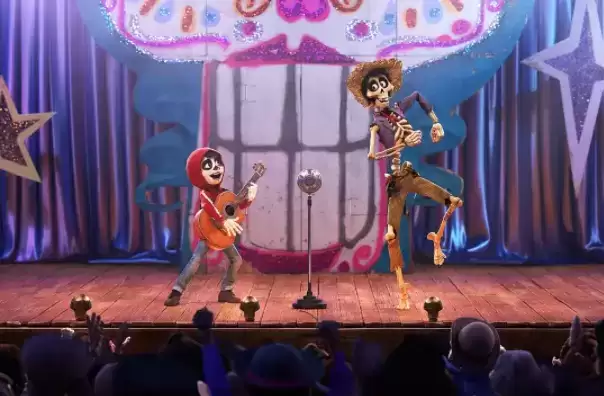 《寻梦环游记》拥有完整的一场歌舞演出捨弃歌舞这种视听形式,还是在一个音乐故事中,这是皮克斯过去近乎前所未有的大胆转变,也是"心灵奇旅"明确为皮克斯带来革命的象征之一(尽管这也带来了世界观上无法自圆的某些瑕疵)。