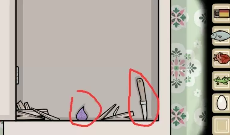 然后我们再老人旁边的柜子里可以找到小刀和第一片花瓣(花瓣在木片中,需要移开木片)