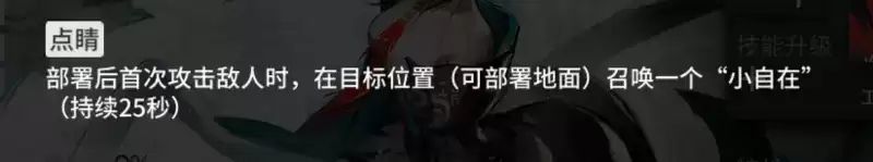 点睛点睛:部署后首次攻击敌人时,在目标位置(可部署地面)召唤一个“小自在”(持续25秒)。
