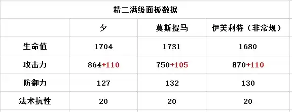 精二满级面板数据由上表可知,夕的面板白值相比于普通的群攻术士要高上不少,甚至可以逼近于非常规的伊芙利特。(配合其自带的杀人书被动,甚至可以将其面板白值最高提升至1371)