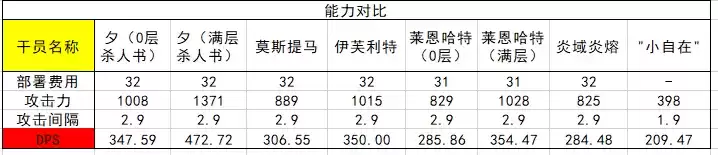 夕面板分析:夕是一位群攻术士干员,因此在干员的横向对比上我们选择了莫斯提马以及非常规的伊芙利特。