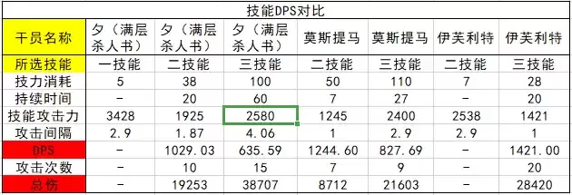 干员普攻以及能力对比技能DPS对比
