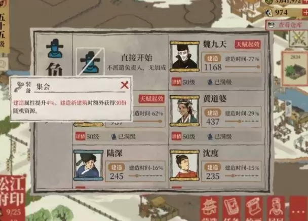 松江府建造初始啥都缺,刚刚发现张择端带上专属珍宝(清明上河图)后,建新建筑能掉落30资源,