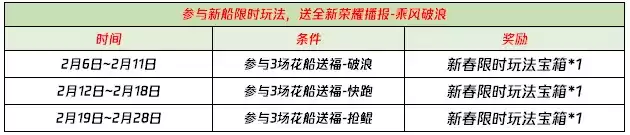 参与王者限时玩法可获得新春限时玩法礼包,累计打开礼包必定获得全新荣耀播报-乘风破浪!