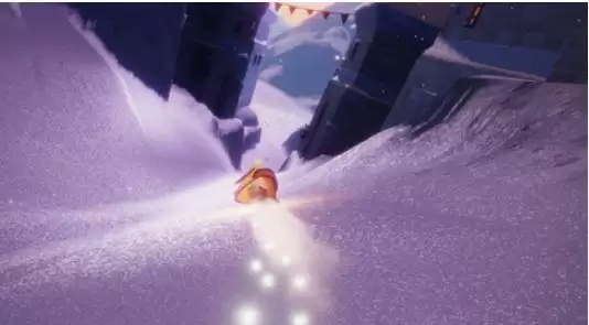 2、穿过山洞沿着狭长的滑道往下跑,一直滑到第一个溜冰场;