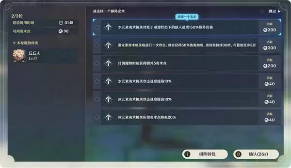 建造机关需要消耗奇术点。棋局初始会为旅行者们提供一定数量的奇术点,此外,还可以通过打倒关卡内的魔物或选择棋阵玄术获得奇术点。
