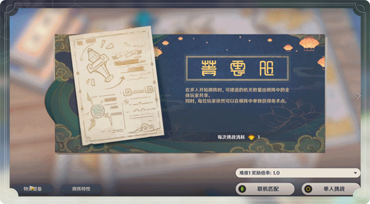 旅行者们可以选择单人挑战或联机匹配参与棋局,联机匹配中支持最多双人联机参与。
