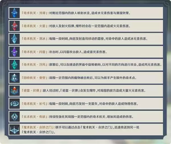 拆除已经建造好的机关会返还部分奇术点。旅行者们也可以消耗部分奇术点来改建已经建造好的奇术机关。