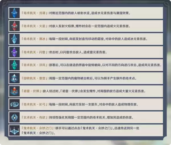 机关每次升级将获得增强,提升到指定等级后还能获得额外效果。在棋阵内能够放置的机关等级和种类,都取决于局外机关改造的程度。