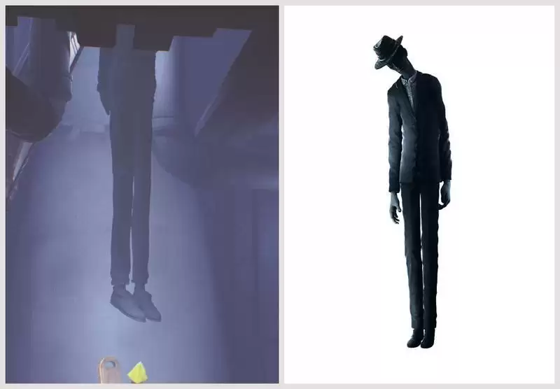 吊死者的推测来自于二人的身材比例很像,甚至瘦男歪脖子的形象也很像是上吊。不过放在一起比较,瘦男似乎胳膊更长手也更大。