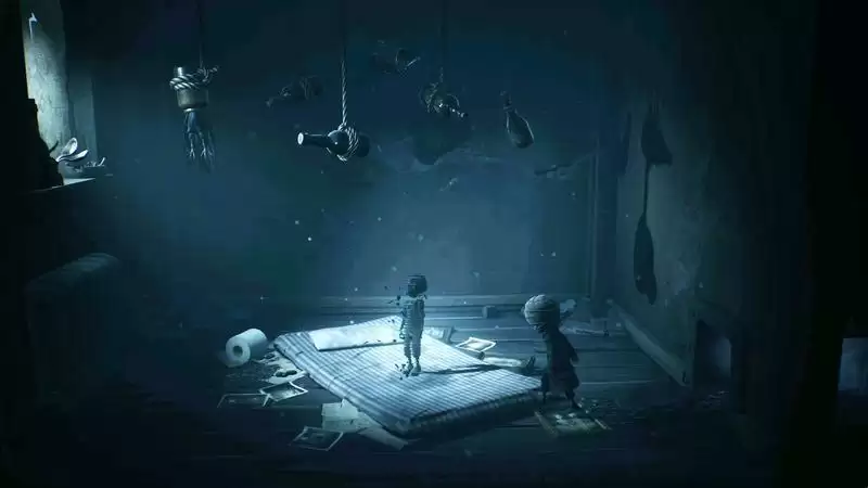 从整个游戏的环境来说,灰黑的色调、模糊而怀揣无端恶意的陌生人、来自于现实而扭曲化的BOSS,这些无疑都是“噩梦”;但梦魇发生时强烈的无助感也会在游戏中逐渐出现并且越来越强烈:无论是初代的小六在饥肠辘辘时面临的无奈选择,还是本作中Mono砸坏八音盒救出小六却致使友谊破裂的双输选择,都让人感到非常无力。
