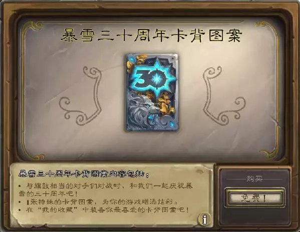 旅店老板友情提示:暴雪线上嘉年华免费的暴雪30周年卡背,需要登录游戏,在游戏商店内领取呢~
