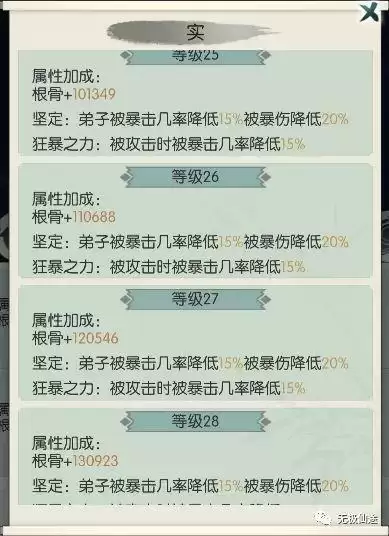 共分虚、实、常、幻四境,分别对应真气、根骨、身法、体魄,当参悟到一定等级,还可额外领悟天地技能,但只能选择其一法则进行参悟,否则会造成法则混乱,若想更换参悟法则,则需使用遗忘药剂重置已感悟的法则。